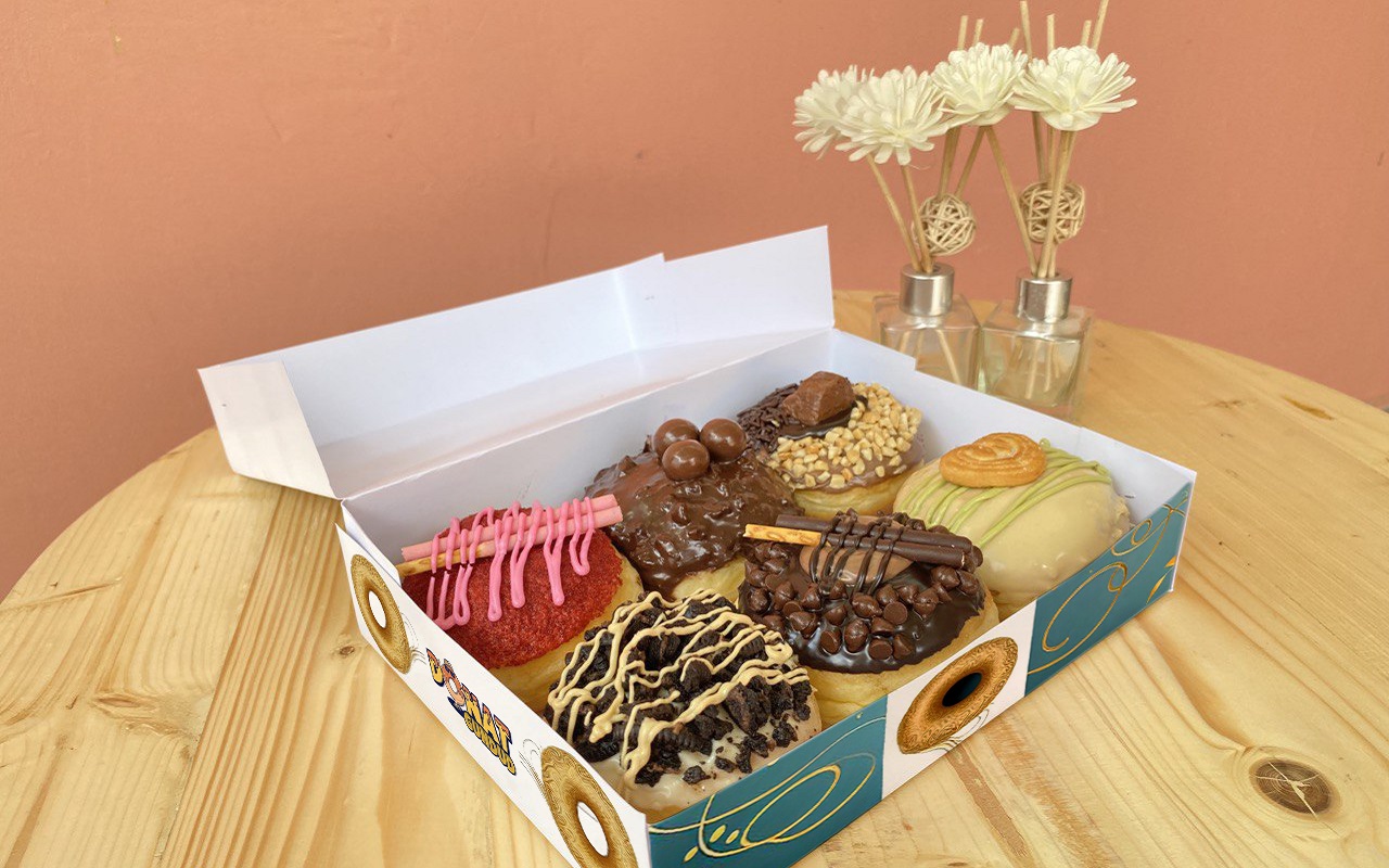 Donat premium dengan variasi toping coklat kacang, red velvet, capuccino oreo, coklat cookies, keju, tiramisu chocochips